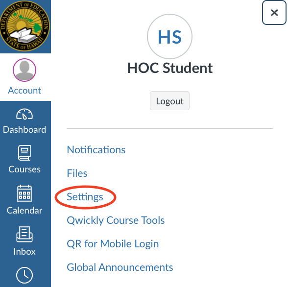 1. In Global Navigation, click the Account link, then click the Settings link.