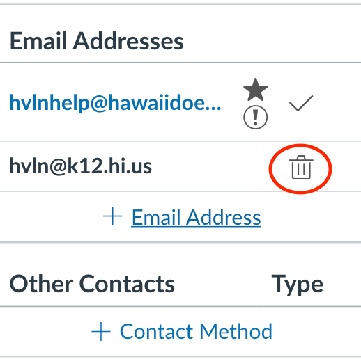 | 5. Delete Email Address: If you would like to delete an email address, click the Delete icon next to the email you want to remove. | ![]() |